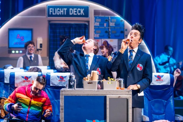 This comedic menage a trois, adapting the fictional Air Scotia, come with some strings attached, if extra baggage: it starts as an extremely meta meditation on the ageing process and their sitcom characters’ limitations. This is after all, a knowing spin-off of the mid nineties cult classic. A shame McKnight doesn’t get a character onstage, but his introductory voiceover’s hilarious.
